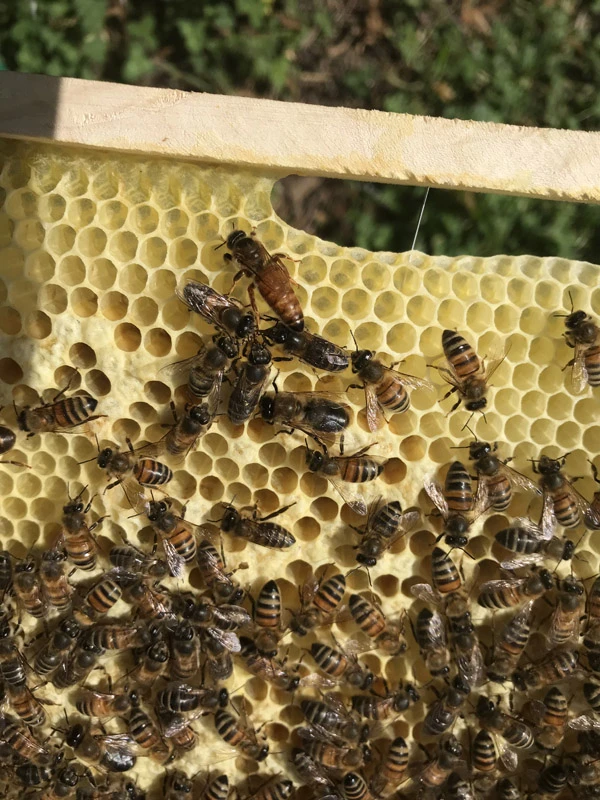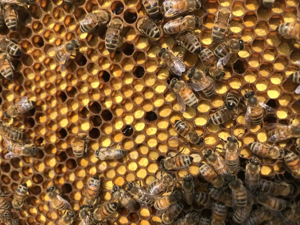 - Construction des alvéoles, qui servent à stocker le miel et le pollen, et à élever le couvain.