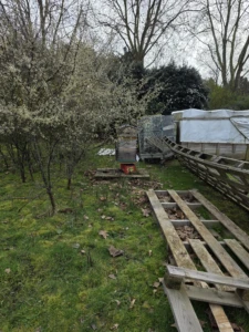 À l’occasion de cette visite, j’ai apporté les hausses sur votre site. Je ne les ai pas encore installées en accès pour les abeilles : elles sont simplement stockées sur place afin d’être prêtes à être posées dès que les colonies seront suffisamment développées et que les conditions seront favorables pour la miellée.
