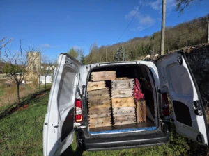 Nous déposons également les hausses. Les abeilles n’y ont pas encore accès, c’est encore un peu tôt, mais elles sont sur place pour être prêtes quand les abeilles seront prêtes !