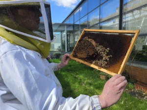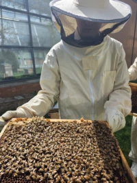 Il s’assure que la ruche dispose de suffisamment de miel ou nourrit avant et pendant l’hiver si nécessaire.