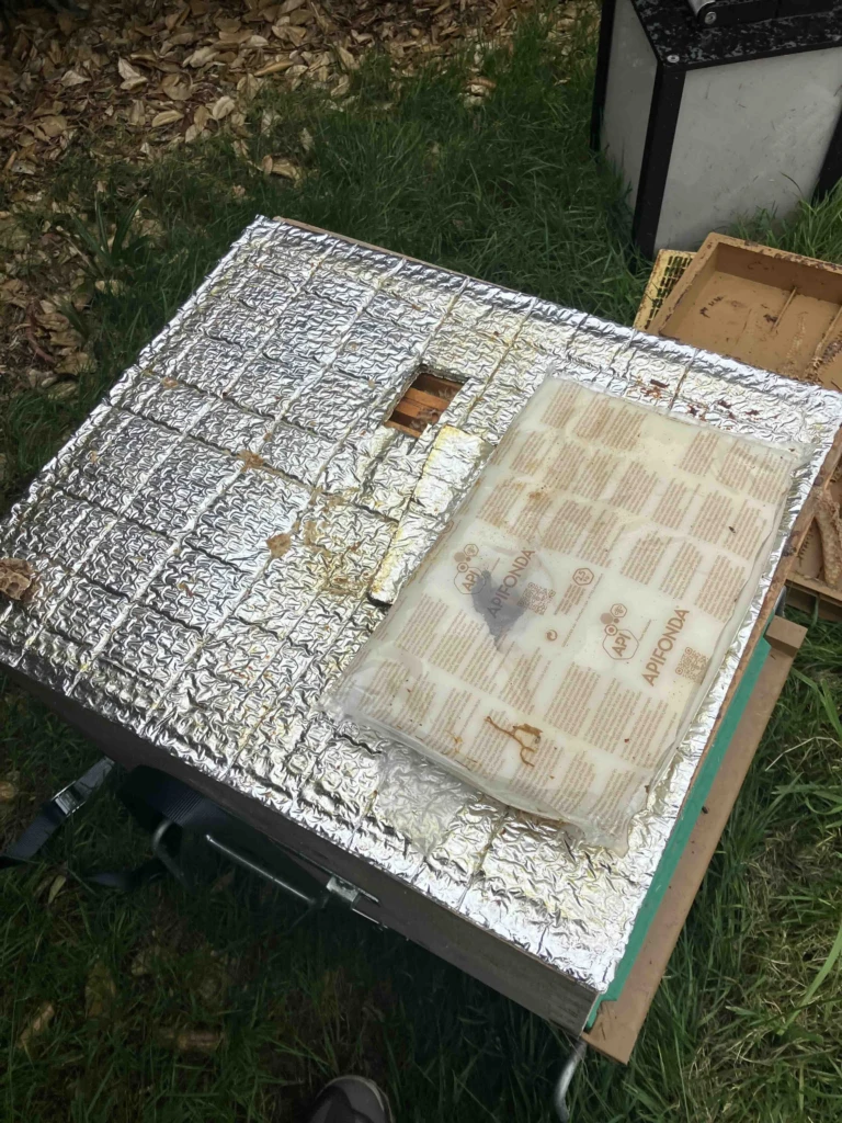 Les colonies sont belles, les abeilles sont bien au chaud sous les isolants.