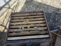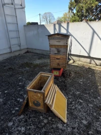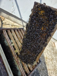 Comme la colonie est très populeuse, il y avait un risque d’essaimage (phénomène naturel par lequel une partie des abeilles quitte la ruche pour former une nouvelle colonie). Pour l’éviter, j’ai réalisé une division en prélevant deux cadres de couvain, ce qui permet de réguler la population.