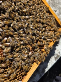 La colonie est en excellente forme ! Les abeilles ont déjà rempli une première hausse de miel, ce qui témoigne d’une forte activité.