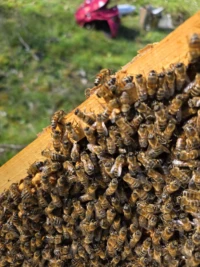 La colonie est en excellente forme ! Les abeilles ont déjà rempli une première hausse de miel, ce qui témoigne d’une forte activité.