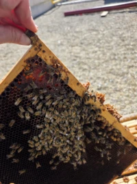 Je constate que la reine ne produit désormais plus que des mâles, sa spermathèque est vide. La colonie est encore bien peuplée et paraît en bonne santé, mais l’activité va progressivement diminuer en raison du manque de renouvellement des ouvrières. À terme, cela entraînera un affaiblissement général de la ruche. Pour y remédier, je prévois d’introduire une nouvelle reine, accompagnée d’un apport d’ouvrières afin de soutenir et relancer la colonie.